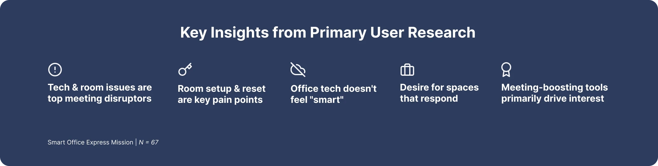 Mosaic represents the culmination of research, iteration, and systems-level design thinking. By connecting devices, spaces, and people into a cohesive smart office ecosystem, the final solution reduces friction in hybrid work and ultimately creates a vision for how smart offices can work better for the people who work in them.